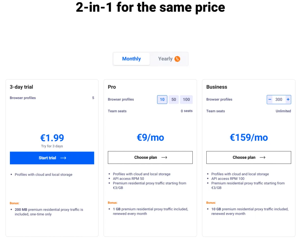 - Benefit from complimentary residential proxy traffic included with every subscription plan.